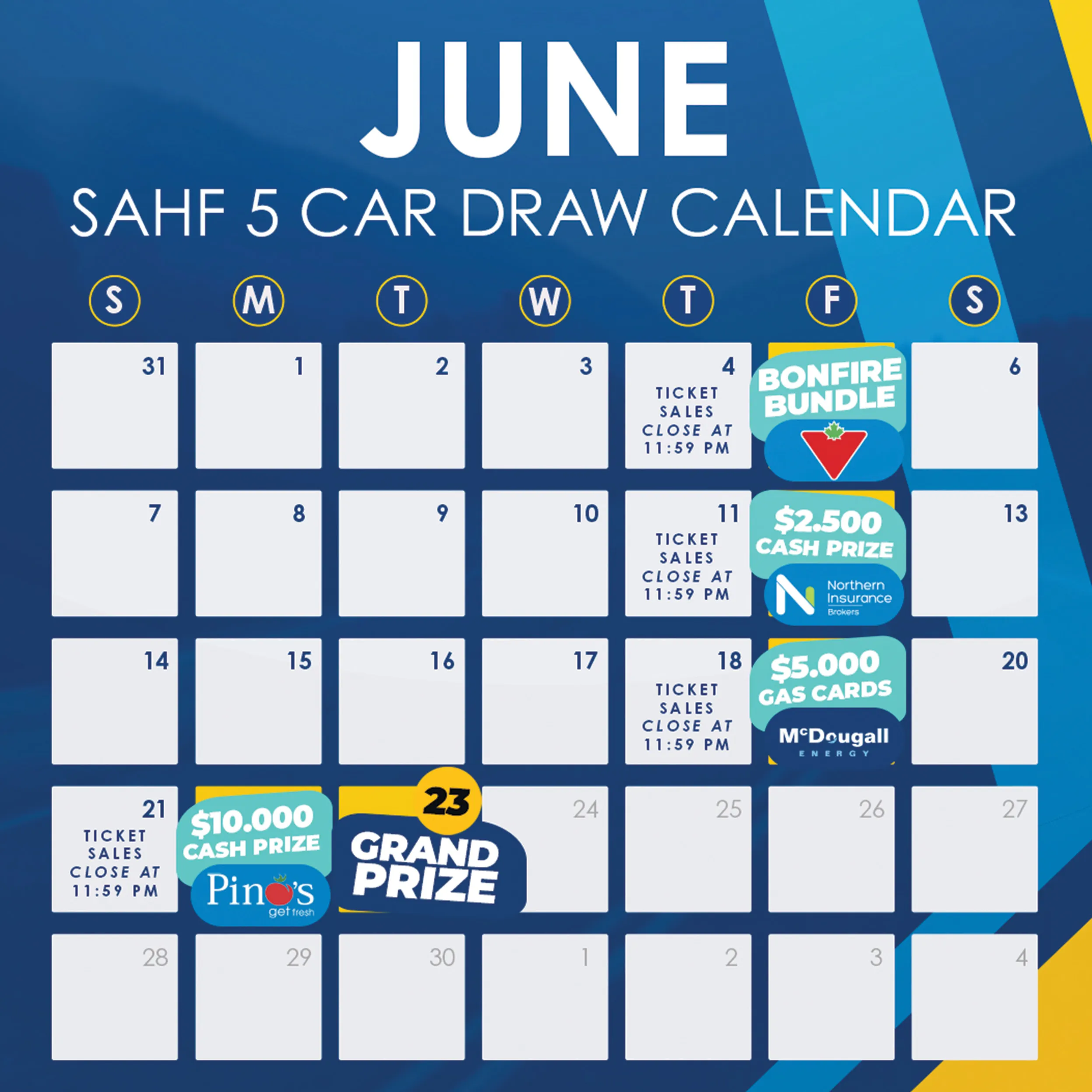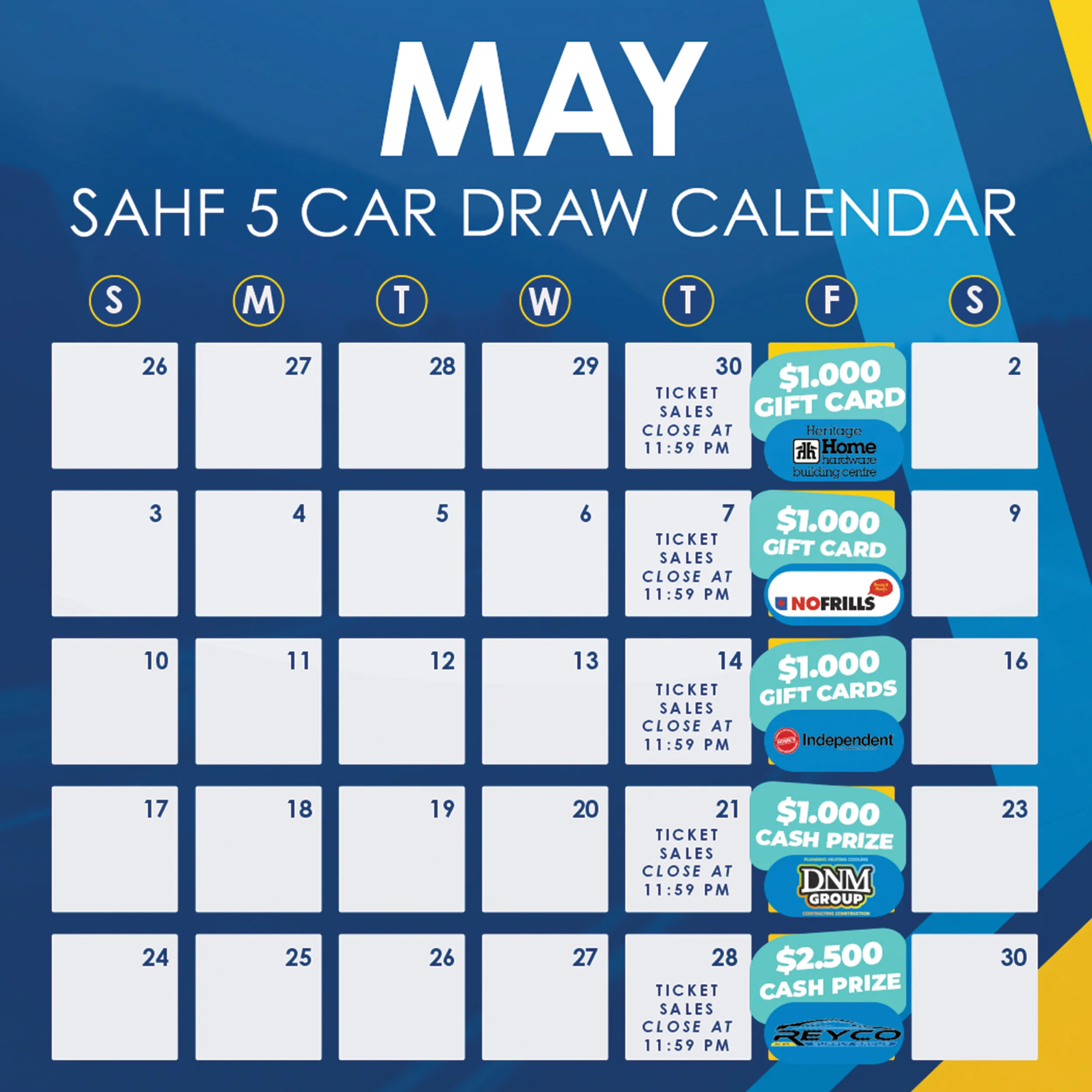 chance to make a real difference in your community. With over $5 million dollars raised since 1989, the 5 Car Draw helps to